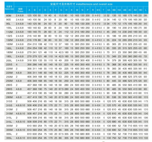 YX3-355M-2 | 250 | 95.8 | YX3-315L2-4 | 200 | 95.4 | YX3-355L-6 | 250 | 95.0 |