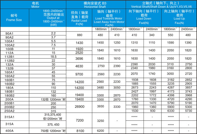 表示Fr和Fa不同時(shí)作用時(shí)的允許值。同時(shí)作用請(qǐng)向弊公司詢問。